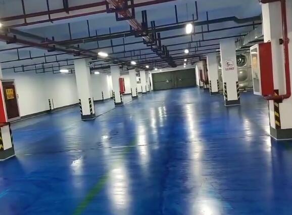 山西鹏贺地坪工程有限公司汾西工地地下停车场库环氧地坪正在施工中